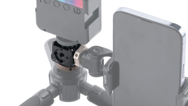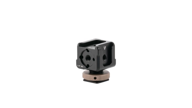 Diese unglaublich kleine Halterung bietet eine Reihe von Optionen für die Montage von Zubehör, wie z. B. mehrere Cold Shoe-Empfänger, 1/4″-20 und 3/8″-16 Gewinde mit Fixierstiften.