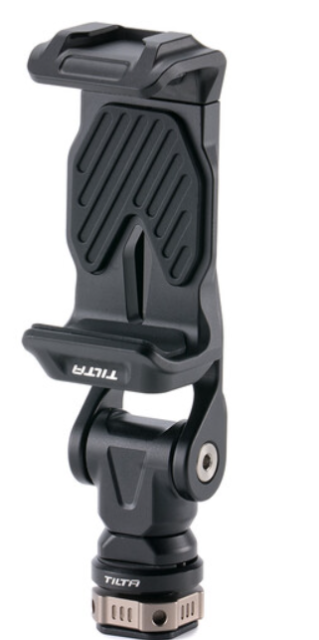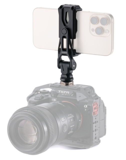 Der Tilta TA-PMB5-CSK-B ist eine komplette, einsatzbereite, drehbare Smartphone-Halterung, die die V2 360°-Smartphone-Klemme (für Smartphones mit einer Breite von 7,6 bis 9,7 cm) mit einem integrierten Kaltschuhadapter kombiniert, sodass Sie Ihr Smartphone sofort auf jeden Kamerablitzschuh, Käfig-Kaltschuh oder oberen Griff schieben können, um es als Regiemonitor, Bildausrichtungshilfe, Live-Stream-Display oder Halterung für einen drahtlosen Empfänger verwenden können – alles mit vollständiger Drehbarkeit von Hoch- zu Querformat und einer stabilen, verdrehsicheren Verbindung.