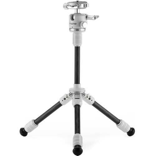 Das Tilta Tabletop-Kugelkopfstativ mit 1-stufig ausziehbaren Kohlefaserbeinen in Schneeweiß bietet vielseitige Höhenoptionen und reibungslose Kugelkopfschwenks - perfekt für leichte Kameraaufbauten unterwegs.