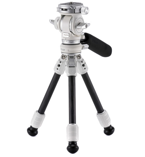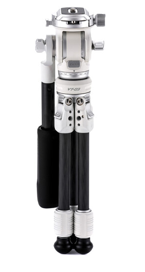 Der VT03 ist auf Vielseitigkeit ausgelegt und verfügt über einen Arbeitshöhenbereich von 6 bis 13,7 Zoll. Er lässt sich auf nur 11,1 Zoll zusammenklappen und ist somit ideal für Reisen und kompakte Aufnahmeumgebungen. Die zweiteiligen Beine verfügen über einen Drehverschlussmechanismus und unterstützen drei einstellbare Beinwinkel (22°, 55° und 82°), was eine stabile Aufstellung auf unebenen Oberflächen ermöglicht. Der Fluidkopf unterstützt eine gleichmäßige 360°-Schwenkung und eine Neigung von +90° bis -60° und verfügt über eine Arca-Schnellwechselplatte für die schnelle Befestigung der Kamera.