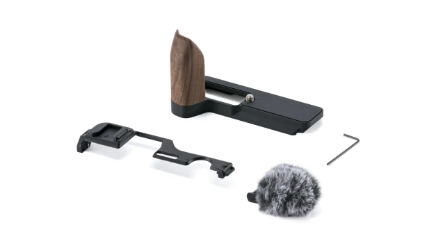 Die Basis dieses Basic Vintage Kits für die Canon PowerShot V1 bildet eine Montageplatte mit einem Holzgriff aus Walnussholz, der eine bequemere Bedienung und Handhabung der Kamera ermöglicht, während sie gleichzeitig kompakt und reisefreundlich bleibt.
