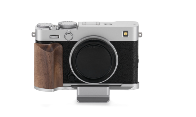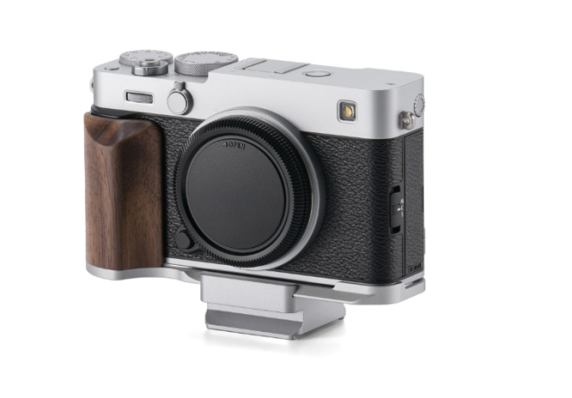 Das Tilta TA-T91-A-S Vintage Camera Cage Base Kit ist ein leichtes L-Bügel aus silbernem Aluminium und Walnussholz mit einem ergonomischen Holzgriff, der speziell für die Fujifilm X-E5 entwickelt wurde. Es bietet verbesserten Handkomfort und ist mit Arca-Swiss-Schnellverschlüssen kompatibel, sodass es sich nahtlos an Gimbals und Stativen befestigen lässt, während der kompakte Retro-Look der Kamera erhalten bleibt.