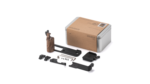 Die Basis dieses Kits ist ein L-Bracket mit einem aus Walnussholz gefertigten Holzhandgriff, der eine komfortablere Bedienung und Handhabung der Kamera ermöglicht.