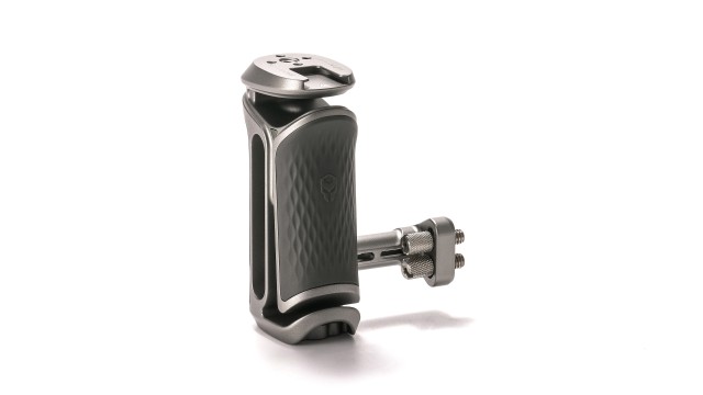 Der Griff besteht aus rutschfestem Silikon, das einen strukturierten Griff bietet, der die Stabilität für einen sicheren Halt verbessert, und verfügt über Befestigungspunkte wie einen Cold Shoe Receiver und ein 1/4″-20-Gewinde mit Aufnahmepunkten für weiteres Zubehör
