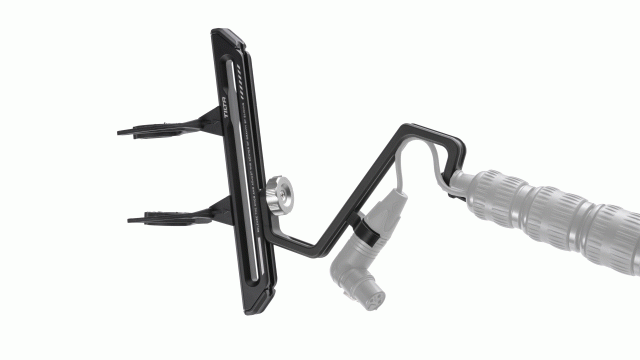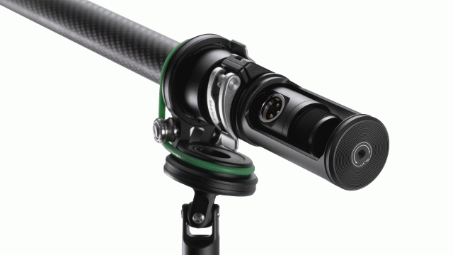 Der wichtigste Teil des Designs ist der Bedienbügel, der am hinteren Ende der Galgenstange befestigt wird und eine einfache Einstellung der Mikrofonrichtung ermöglicht.