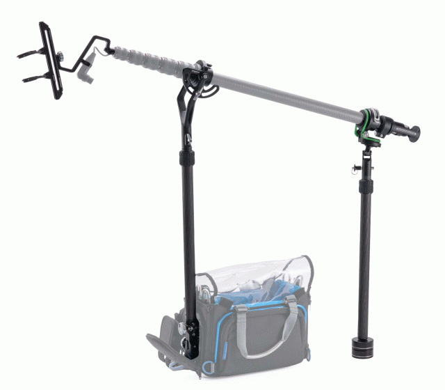 Das Design basiert auf einem zentralen Stützmast, der über einen Baby-Pin-Empfänger an einer Vielzahl von Tonmischertaschen befestigt werden kann.