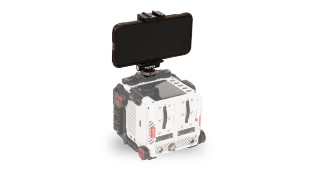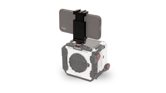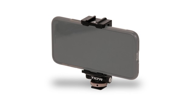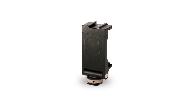 Diese Halterung wird über einen kalten Schuh an Ihrer Kamera befestigt und bietet eine verstellbare Klemme, mit der Sie Ihr Handy an Ihrer Ausrüstung befestigen können, um bei Bedarf schnell darauf zugreifen zu können.