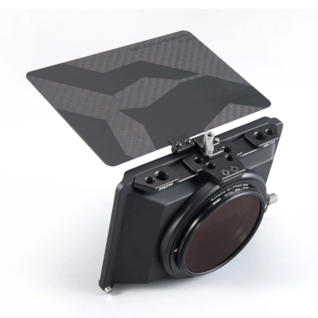 Kompakt und leicht. Integrales Design. Die Mini Matte Box bietet zusätzlichen Schutz für Ihr Objektiv und kann mit der mitgelieferten oberen französischen Fahne Lichtreflexe verhindern. 1/4-20- und 3/8-16-Befestigungspunkte sowie Kaltschuhbefestigungen bieten Befestigungspunkte für jegliches Zubehör, einschließlich LED-Leuchten oder Mikrofone. Das Kit enthält außerdem eine 15-mm-Mattboxhalterung, die an der Unterseite der Mattbox befestigt wird und das Objektiv in seiner Position fixiert, um ihm Stabilität zu verleihen. (unterstützt keine Objektive mit Teleskop-Frontlinsen).