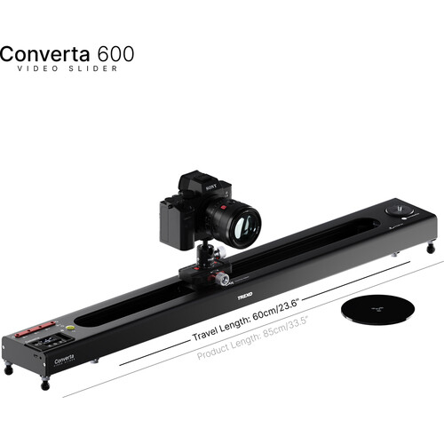 Der Trexo Converta 600 Essential ist ein motorisierter Slider mit hochmodernen Funktionen, der für Kreative entwickelt wurde, die intelligente Bewegungen und eine größere Reichweite benötigen. Mit einer Länge von 33,5" und einem Verfahrweg von 25,6" ermöglicht er reibungslose filmische Bewegungen für schwerere Kamerarigs in horizontaler und vertikaler Ausrichtung.