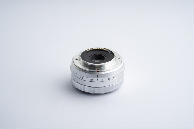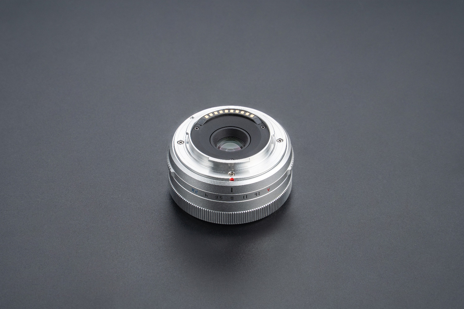 Die silberne Version des TTArtisan AF 27mm f/2.8 enthält außerdem eine Rückkappe mit integriertem USB-C-Anschluss für einfache Firmware-Updates.