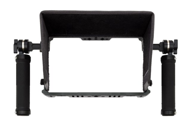 Formschlüssiger Aluminiumkäfig für TVLogic F-7H/M2/F-7HS 7" Feldmonitore. Im Lieferumfang enthalten sind zwei leichte, perfekte Griffe mit Rosetten im ARRI-Stil. Die Griffe sind aus weichem Gummi gefertigt und liegen während Ihrer Filmproduktion oder Ihres Videodrehs sehr gut in der Hand. Dank der perfekten Griffe und der Montagehalterung können Sie Ihren TVLogic F7H-Monitor montiert, in der Hand gehalten oder bei Verwendung eines kabellosen Empfängers sogar eigenständig verwenden! Die mitgelieferte, leicht zu befestigende Sonnenblende schützt Ihren Monitor vor Blendung und ermöglicht gleichzeitig den Zugriff auf die Bedientasten des Monitors.