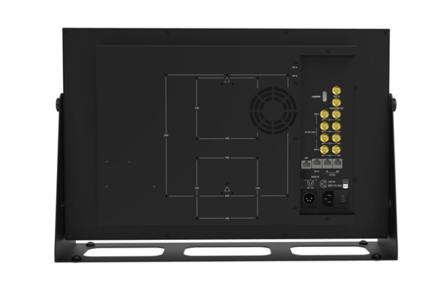 Die Konnektivität umfasst vier 12G-SDI-Eingänge mit Loop-Ausgängen, Quad-Link-3G-SDI-Ein-/Ausgang, HDMI 2.0-Eingang, zwei SFP-Steckplätze und Referenzeingang. Der Monitor unterstützt die Konvertierung von HDMI zu SDI und SFP zu SDI, Quad-Link-12G-Eingang zu Single-Link-12G-Ausgang sowie Quad-View- oder Dual-View-Anzeigemodi für Produktionsaufbauten mit mehreren Kameras.