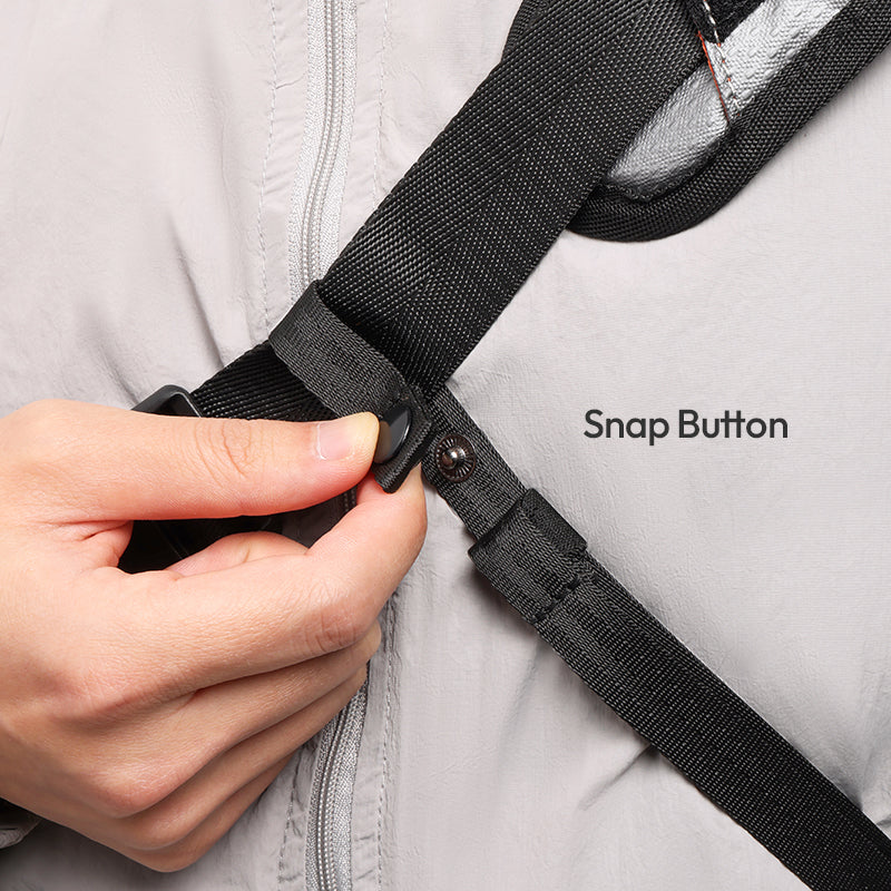 Das ergonomische Design sorgt für einfache Tragbarkeit, mit drei Fixpunkten, die das Gewicht gleichmäßig verteilen und so Komfort und vielseitige Trageoptionen bieten.