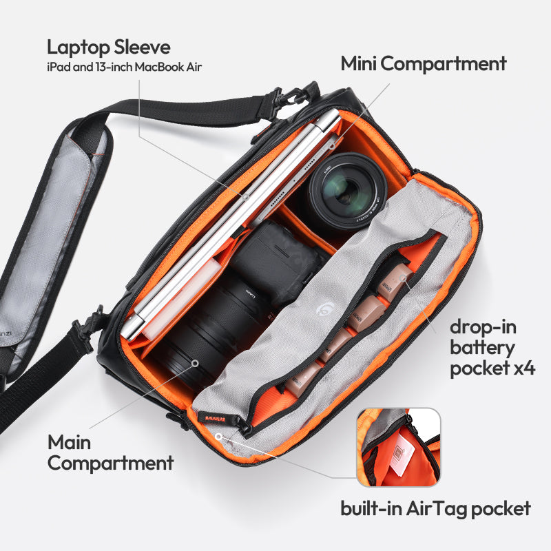 Entdecken Sie die Ulanzi SU02 13L Hoshino Crossbody Bag B163, die für Fotografen und Reisende entwickelt wurde, die Stil und Funktionalität suchen. Mit einem Fassungsvermögen von 13 Litern bietet diese leichte, wasserabweisende Tasche Platz für ein 13-Zoll-MacBook Air, eine Kamera, Objektive und Zubehör. Der ergonomische Dreipunktgurt sorgt für Komfort, während anpassbare EVA-Trennwände stoßfesten Schutz bieten. Mit ihrem diebstahlsicheren Design, dem schnellen Zugriff mit einer Hand, den Stativgurten und mehreren Fächern ist sie perfekt für Reisen, Pendler und urbane Abenteuer geeignet. Die SU02 besteht aus strapazierfähiger Polyesterfaser, wiegt nur 640 g (ohne Trennwände) und misst 38,5 x 14,5 x 24,5 cm.