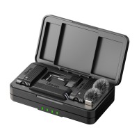 5.Langlebiger Akku für längere Aufnahmen. Genießen Sie bis zu 13,5 Stunden ununterbrochene Aufnahme mit unserem leistungsstarken Ladecase, das beide Sender mehr als zweimal aufladen kann.