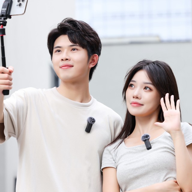 1.Dual-Empfänger, perfekte Synchronisation. Erleben Sie die Leistungsfähigkeit unseres kabellosen Lavalier-Mikrofons mit Dual-Empfänger, das sich perfekt für die Aufnahme jedes Details in unterschiedlichen Umgebungen eignet.
