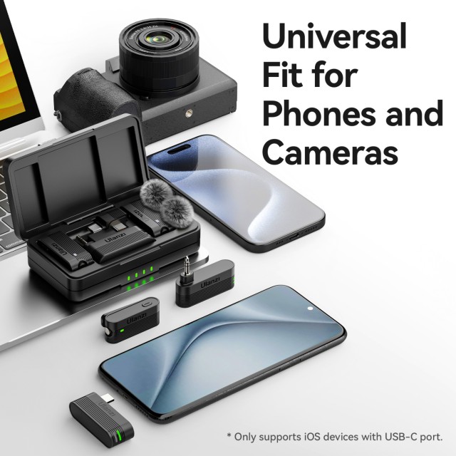 3.Universell einsetzbar für Smartphones und Kameras. Ausgestattet mit Typ-C- und 3,5-mm-Adaptern ist dieses Mikrofon mit Android, iOS und Kameras kompatibel.