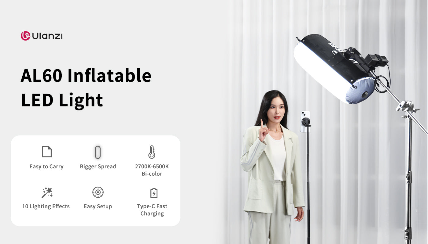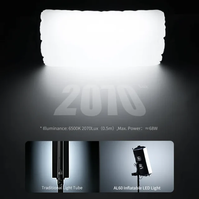 Diese Leuchte ist dank der automatischen Aufblaspumpe in nur 20 Sekunden einsatzbereit. Kein manuelles Pumpen oder Blasen erforderlich – drücken Sie einfach einen Knopf für eine schnelle und mühelose Einrichtung. Diese aufblasbare LED-Leuchte wurde für Komfort entwickelt und lässt sich leicht zusammenklappen, was sie zum idealen Begleiter für Outdoor-Fotografie macht. Sie wurde verbessert, um eine weiche Beleuchtung in Kinoqualität zu liefern, die Porträts aufwertet und ihnen einen natürlichen, schönen Glanz verleiht.
