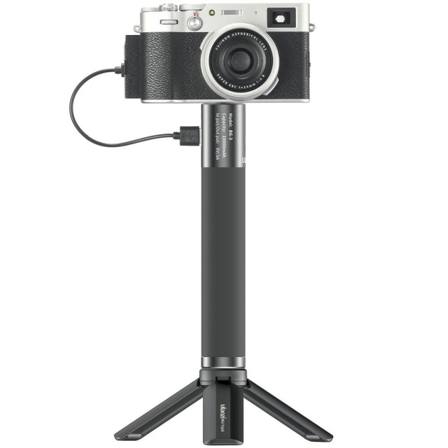 V horní části BG-3 se nachází montážní šroub 1/4"-20, který umožňuje připevnit akční kamery, kompaktní bezzrcadlovky, držáky telefonů, LED světla, mikrofony a další příslušenství. Pro statické fotografování lze na závit 1/4"-20 ve spodní části připevnit mini stativ, který rukojeť promění ve stabilní stativ pro časosběrné fotografování, vlogování nebo stolní snímky. LED indikátory zobrazují stav baterie a nabíjení, zatímco duální USB porty umožňují současné nabíjení a používání zařízení. Lehký, univerzální a kompaktní BG-3 je nezbytností pro tvůrce mobilního obsahu.