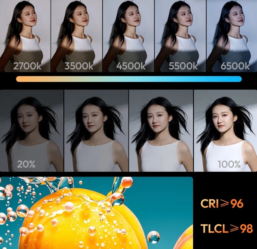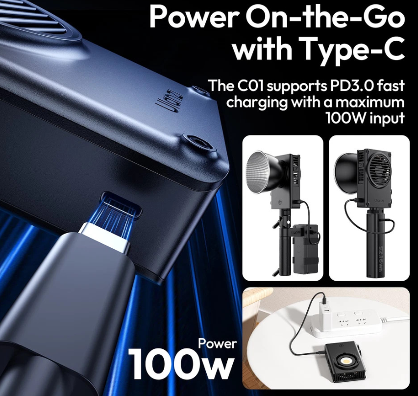 Stellen Sie die Helligkeit von 0 bis 100 % und die Farbtemperatur zwischen 2700 K und 6500 K fein ein, um vielseitige Lichtstimmungen zu erzielen. Mit einem CRI von 96+ und einem TLCI von ≥98 fangen Ihre Aufnahmen jedes Mal lebendige, naturgetreue Farben ein. Die C01 unterstützt USB-Typ-C-PD3.0-Eingänge (bis zu 100 W) für flexible Stromversorgungsoptionen, sodass Sie Powerbanks, V-Mount-Akkus oder andere tragbare Stromquellen verwenden können.