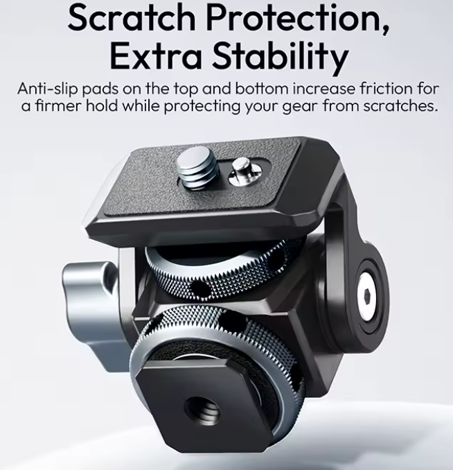 Der aus strapazierfähigem Aluminium gefertigte Kugelkopf bietet langlebige Leistung und ist dabei leicht und tragbar. Mit einer Tragkraft von bis zu 3 kg unterstützt er eine Vielzahl von Kameraaufbauten, von kompakten spiegellosen Kameras bis hin zu leichten DSLR-Rigs.
