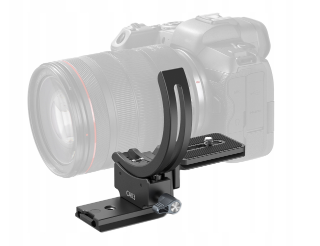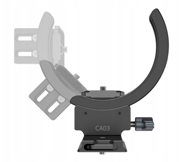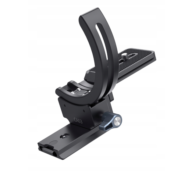 Die einstellbare Plattformhöhe ermöglicht eine Feinabstimmung für verschiedene Objektivkonstruktionen, während das halbkreisförmige Kragen-Design eine Installation ohne Entfernen des Objektivs von der Kamera ermöglicht. Die CA03 besteht aus kratz- und korrosionsbeständigem Aluminium und Stahl und unterstützt Objektive mit einem Gewicht von bis zu 5 kg, wobei sie gleichzeitig leicht und tragbar bleibt.