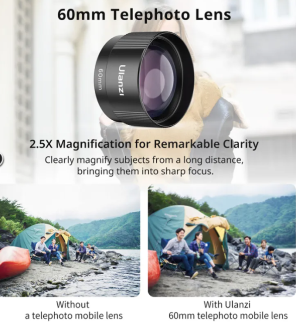 Das Ulanzi CL-006 60-mm-Teleobjektiv für Mobilgeräte bietet Ihnen professionelle Zoomqualität für Ihre Smartphone-Fotografie. Mit einer 2,5-fachen optischen Vergrößerung, hochwertigem Glas und einem robusten Aluminiumgehäuse liefert es scharfe, verzerrungsfreie Bilder für detailreiche Nahaufnahmen und kreative Aufnahmen auf iPhone-, Samsung- und Android-Geräten.