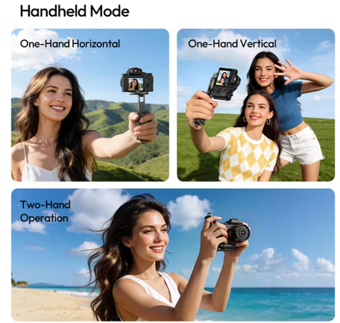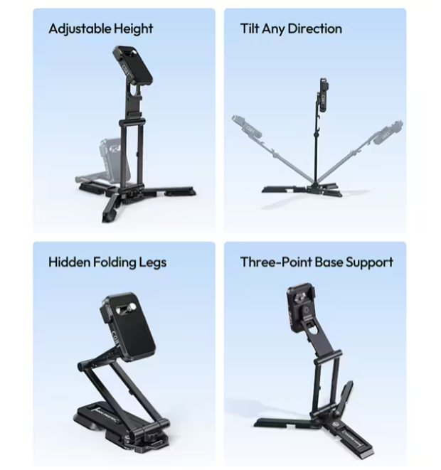 Der Stativkopf unterstützt eine vollständige 360°-Drehung mit sanfter Dämpfung und ermöglicht so präzise Bildausschnitte und schnelle Winkelwechsel. Darüber hinaus bietet sein mehrachsiges Verstellsystem (Drehbereich von 210°, 350°, 210°, 360° und 120°) dem Anwender vollständige Kontrolle über die Positionierung, was ihn ideal für dynamische Aufnahmeumgebungen, Tischaufbauten und kreative Bildkompositionen macht.