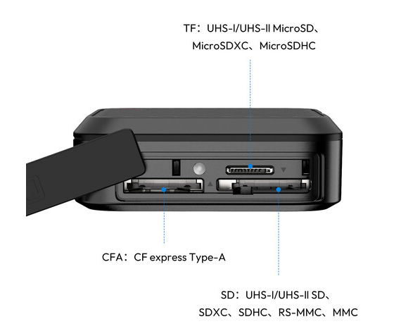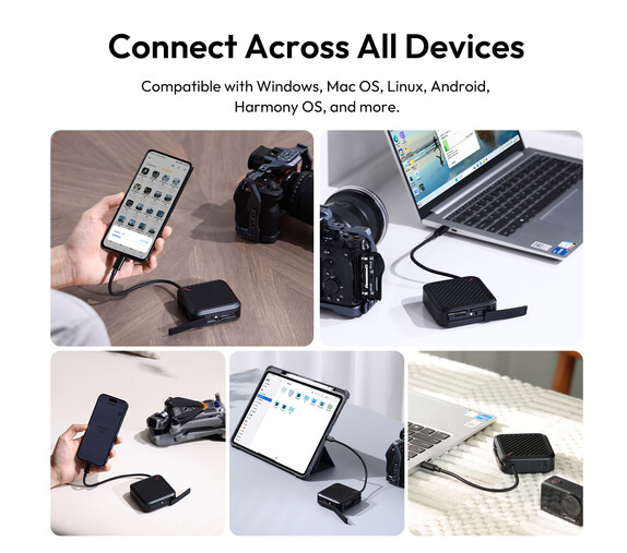 Das Ulanzi C078GBB1 CRC10 3-in-1-Kartenlesegerät vereint schnelle Datenübertragung und sichere Medienaufbewahrung in einem kompakten Design. Es unterstützt CFexpress Typ A-, SD- und microSD-Karten und verfügt über ein integriertes 10 Gb/s USB-C 3.2 Gen 2-Kabel, mehrere Speicherkartensteckplätze und ein robustes Gehäuse aus Aluminiumlegierung für effiziente Wärmeableitung und zuverlässige Leistung unterwegs.