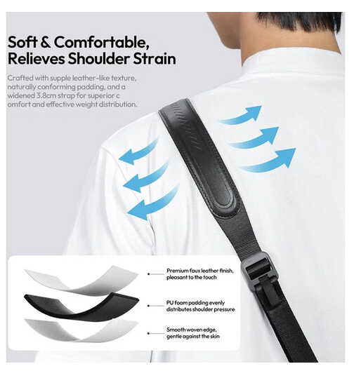 Der Ulanzi CSS1 U-Snap-Kameraschultergurt (Mercury Silver) vereint Komfort, Langlebigkeit und praktische Funktionen für Fotografen, die viel unterwegs sind. Er trägt bis zu 60 kg, lässt sich mit einer Hand in der Länge verstellen, verfügt über eine hochwertige Polsterung aus Kunstleder und das U-Snap-Schnellverschlusssystem zum schnellen Anbringen und Abnehmen Ihrer Kamera.