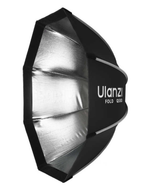 Die ULANZI FOLD QS80 Quick-Release-Achtkant-Softbox (80 cm) L303 sorgt für eine weiche, gleichmäßige Ausleuchtung bei Foto- und Videoaufnahmen. Ihr achteckiges Design gewährleistet eine vorteilhafte Lichtstimmung, während der Schnellverschlussmechanismus einen schnellen Auf- und Abbau ermöglicht, wodurch sie sich ideal für Porträts, Produktaufnahmen und Studioanwendungen eignet. Sie ist mit Bowens-Mount-Leuchten kompatibel und vereint Komfort, Tragbarkeit und professionelle Lichtqualität.