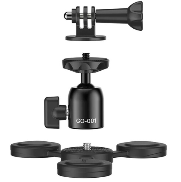 Die Ulanzi GO-001 Magnethalterung ist eine 267 g schwere dreieckige Actionkamera-Halterung mit vier verstärkten Magneten (600 g Tragkraft), einem um 360° schwenkbaren Kugelkopf, einem 1/4"-20-Gewinde und einer kratzfesten Silikon-/Aluminiumkonstruktion, die eine stabile, flexible Befestigung auf Metalloberflächen mit schneller Umschaltung zwischen Hoch- und Querformat gewährleistet.