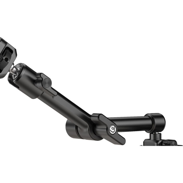 DerHD02 Magic Arm mit Crab ClampvonUlanzi ist ein 10-Zoll-Magic-Arm mit einer Tragkraft von 6,6 lb. Befestigen Sie Kameras, Leuchten oder anderes Zubehör mit der 1/4"-20-Schraube mit ARRI-Fixierstiften oder den 1/4"-20- und 3/8"-16-Gewindebohrungen. Befestigen Sie den Arm mit der mitgelieferten Klemme mit rutschfesten Polstern an Oberflächen mit einer Dicke zwischen 0,86 und 3,4 Zoll. Dank des 360°-Kugelkopfes an jedem Ende und der 360°-Drehung zwischen den beiden Armabschnitten lässt sich der Winkel nach der Montage ganz einfach einstellen.