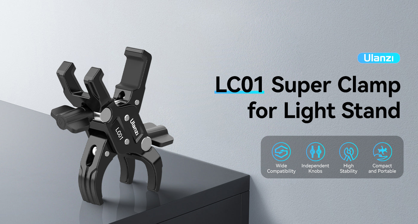 Die Ulanzi LC01 Super Clamp Mount ist eine kompakte, robuste Lösung zum Befestigen von Ausrüstung an Lichtstativen, Stativen oder Rigging-Aufbauten. Mit zwei Klemmen, die sowohl für runde als auch für quadratische Rohre geeignet sind, trägt sie bis zu 5 kg Ausrüstung – perfekt für Leuchten, Kameras oder Zubehör. Sie besteht aus einer robusten Legierung und griffigem Silikon und sorgt für felsenfeste Stabilität. Die LC01 ist ideal für mobile Kreative und Studio-Profis gleichermaßen und bietet präzise Kontrolle und Tragbarkeit in einem handflächengroßen Kraftpaket.