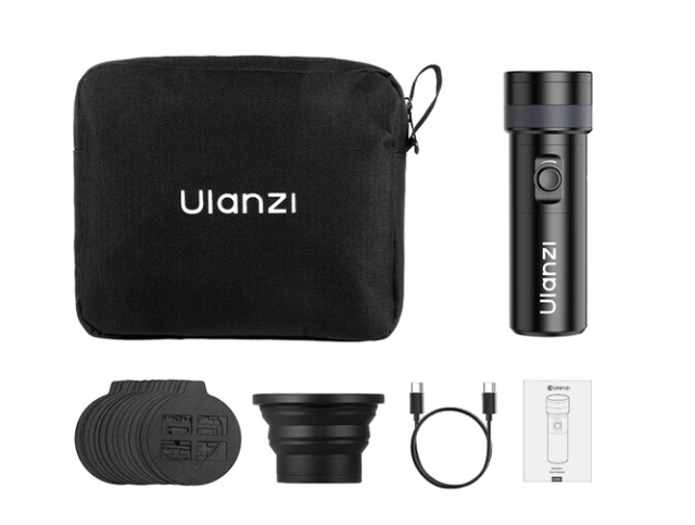 Die Ulanzi LM01 Photography Flashlight ist eine kompakte und vielseitige 10-W-LED-Leuchte, die sowohl für Foto- als auch für Videoanwendungen entwickelt wurde. Diese leichte Taschenlampe bietet einstellbare Farbtemperaturen (RGB: Orange, Blau, Weiß, Rot) und Dimmoptionen, verfügt über einen fokussierbaren Zoom und enthält 20 Gobos für kreative Projektionen. Mit einem integrierten 7500-mAh-Akku, USB-C-Aufladung und einem 1/4"-20-Gewinde sowie einer ARRI-Halterung ist die LM01 perfekt für Aufnahmen unterwegs geeignet. Für zusätzlichen Komfort sind außerdem ein klappbarer Objektivtubus und eine Aufbewahrungstasche im Lieferumfang enthalten.