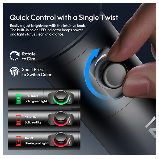 Integrierter Dimmer: Schnelles Dimmen über den Drehknopf für präzise Steuerung.