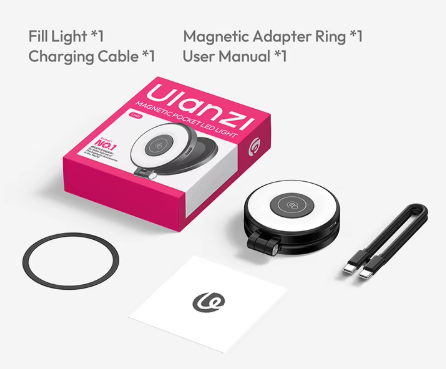 Das Ulanzi LM21 Magnetic Fill Light ist ein vielseitiges Beleuchtungszubehör für Kreative, die eine zuverlässige Beleuchtung in kompakter und reisefreundlicher Form benötigen. Dank MagSafe-Kompatibilität lässt es sich problemlos an kompatiblen iPhones oder magnetischen Handyhüllen befestigen und sorgt so für sofortige Beleuchtung bei Selfies, Videoaufnahmen, Livestreams und Videoanrufen.