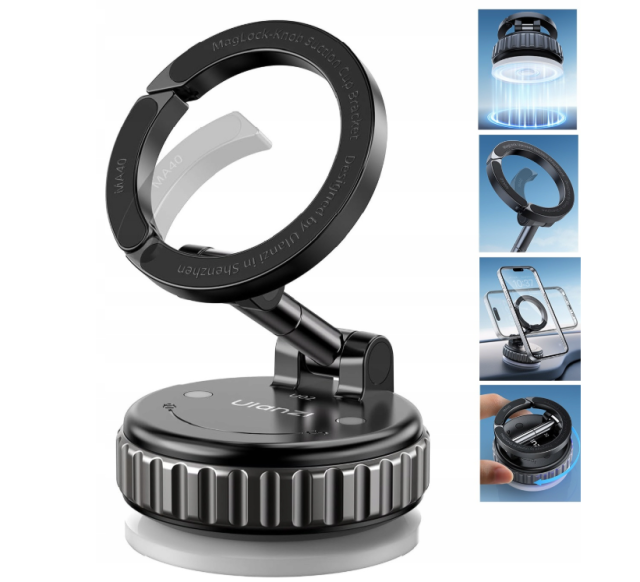 Die ULANZI MA40 MagLock-Saugnapfhalterung ist eine hochwertige magnetische Smartphone-Halterung, die speziell für Kreative, Autofahrer und Alltagsnutzer entwickelt wurde, die eine zuverlässige und vielseitig verstellbare Befestigungslösung benötigen. Durch die Kombination der MagSafe-Magnettechnologie mit einem starken Vakuum-Saugnapfsystem bietet sie doppelte Sicherheit für eine stabile Befestigung auf jeder glatten, ebenen Oberfläche wie Glas, Spiegeln, Fliesen oder im Fahrzeuginnenraum.