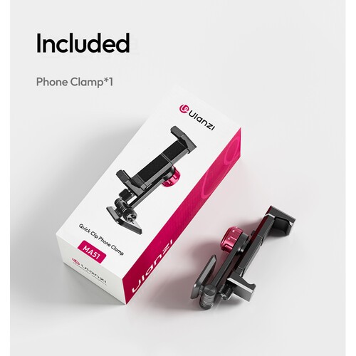 Die Ulanzi MA51 QuickClip-Handyhalterung ist eine vielseitige Handyhalterung mit einer UKA-Schnellwechselbasis, 180° Neigung, 360° Drehung und zwei Kaltschuhhalterungen für Zubehör, kompatibel mit Smartphones mit einer Breite von 2,6 bis 3,5 Zoll.