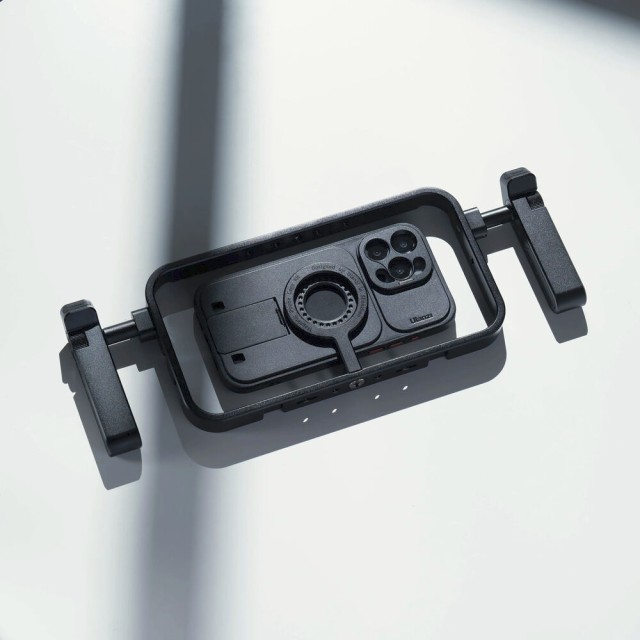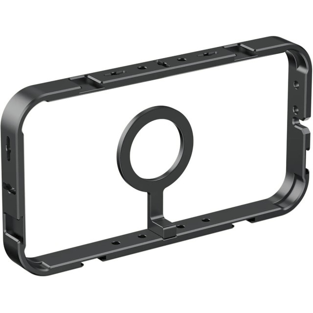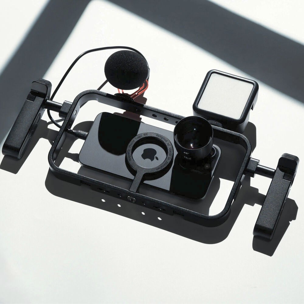 Verbessern Sie Ihre mobile Videografie mit dem magnetischen Smartphone-Käfig Ulanzi MG-001, der für MagSafe-kompatible Smartphones und Handyhüllen entwickelt wurde. Der Käfig besteht aus einer strapazierfähigen Aluminiumlegierung und Silikon, ist leicht und dennoch robust und bietet eine professionelle Halterung für Live-Streaming, Vlogging oder Videoaufnahmen vor Ort. Der Cage verfügt über einen magnetischen Ständer, der Ihr Smartphone mit einer 1/4"-20-Schraube für eine schnelle Einrichtung sichert, während zwei seitliche Griffe für eine bequeme und stabile Bedienung sorgen. Diese Griffe sind abnehmbar und können in jedem der acht Positionierungslöcher angebracht werden, sodass Sie nahtlos zwischen horizontaler und vertikaler Ausrichtung wechseln können. Mit fünf 1/4"-20-Gewindebohrungen und sechs Kaltschuhhalterungen können Sie Mikrofone, LED-Leuchten oder anderes Zubehör anbringen, um Ihr kreatives Setup zu verbessern. Das N52-Magnetsystem des MG-001 sorgt für einen sicheren Halt Ihres Smartphones und gibt Ihnen Sicherheit bei dynamischen Aufnahmen.