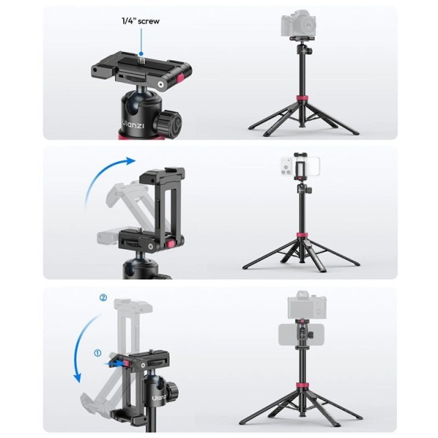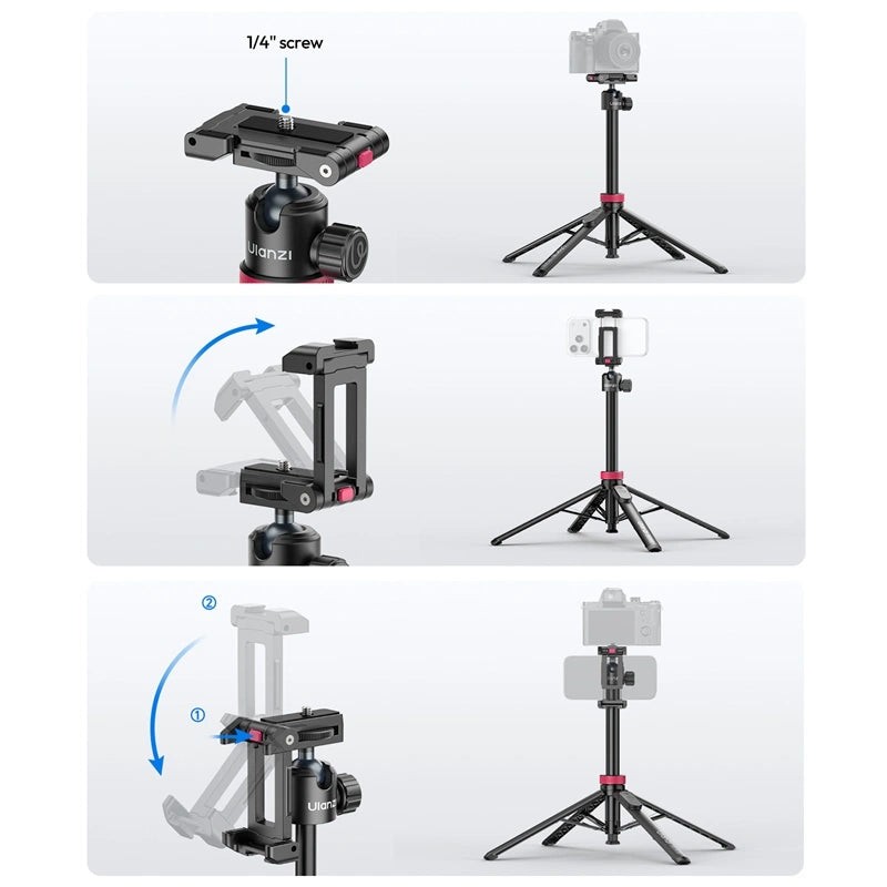 Der Ulanzi MT 44 B ist ein vielseitiger 2-in-1-Selfie-Stick und Stativ, der speziell für Content-Creators entwickelt wurde. Dieses tragbare Zubehör verfügt über eine integrierte Handyhalterung, die sich wegklappen lässt und darunter eine Universalschraube für Kameras und Zubehör freigibt. Dank seiner beeindruckenden Ausziehhöhe und einem um 360 Grad drehbaren Kugelkopf lässt sich der perfekte Winkel mühelos einfangen. Er verfügt über eine integrierte Blitzschuhhalterung zum Anbringen von Mikrofonen oder LED-Leuchten und eignet sich somit ideal für Vlogging und Live-Streaming. Dieses leichte und dennoch stabile Multifunktionswerkzeug ist der perfekte Begleiter für Reisen und professionelle Videoaufnahmen.