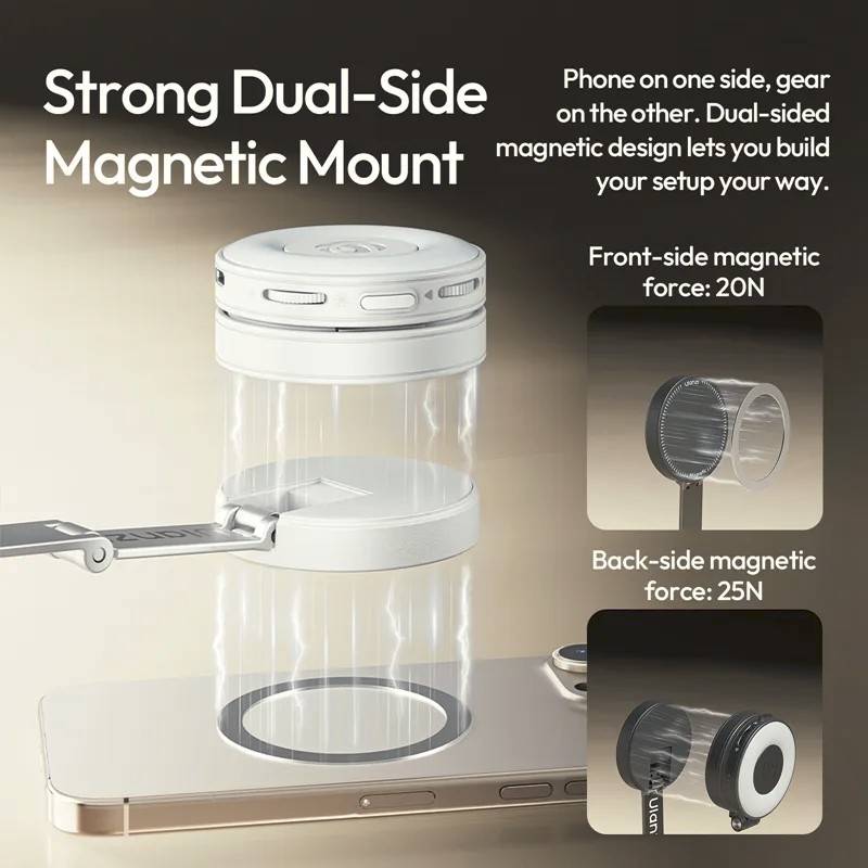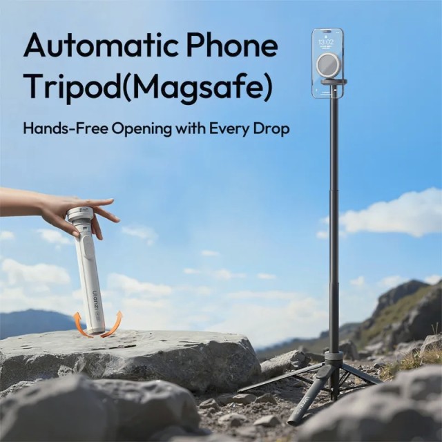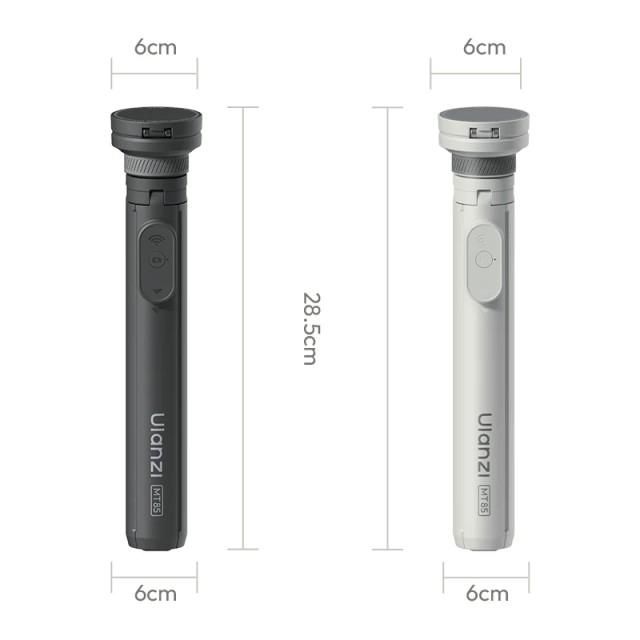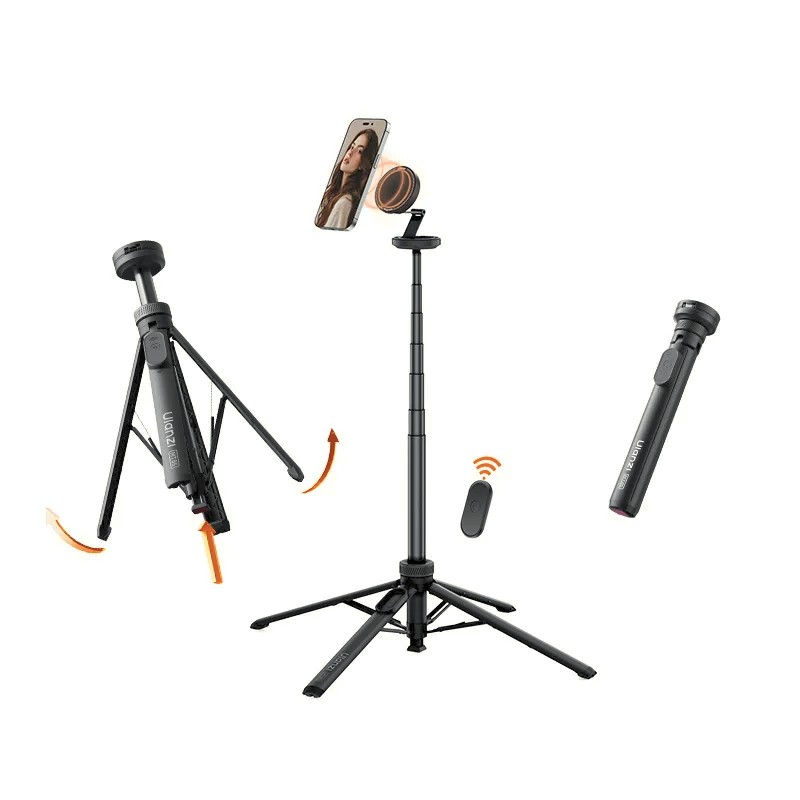 Das Ulanzi MT85 Black ist ein automatisches Smartphone-Stativ mit einer doppelseitigen MagSafe-kompatiblen Halterung, vier Beinen für Stabilität und einer Bluetooth-Fernbedienung für die freihändige Steuerung. Es ist kompakt, tragbar und auf 1,5 m ausziehbar und eignet sich perfekt für Selfies, Ganzkörperaufnahmen, Vlogging und Live-Streaming.