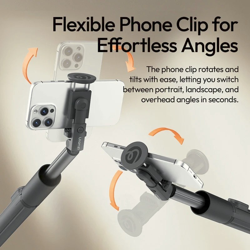 Das automatische Smartphone-Stativ Ulanzi MT86 in Weiß wurde für mobile Kreative entwickelt, die Mobilität ohne Einbußen bei der Stabilität benötigen. Sein verbessertes Design mit vier Beinen und rutschfesten Polstern sorgt für einen sicheren Stand auf jeder Oberfläche, während die 8-teiligen ausziehbaren Beine im Stativmodus eine Höhe von bis zu 1,53 m und im Selfie-Stick-Modus eine Höhe von bis zu 1,5 m erreichen. Die Handyklemme lässt sich um ±90° drehen und um 90° neigen und unterstützt Geräte mit einer Breite von 5,6 bis 9,2 cm, sodass schnell zwischen Hoch-, Quer- und Überkopfwinkel gewechselt werden kann. Eine integrierte Blitzschuhhalterung bietet Platz für kleine Leuchten oder Mikrofone, um Ihre Aufnahmeeinrichtung zu verbessern. Das Stativ verfügt über einen automatischen Schnappmechanismus zum sofortigen Aufstellen und eine abnehmbare Bluetooth-Fernbedienung mit einer Reichweite von 10 m für die drahtlose Aufnahme von Fotos und Videos. Mit einem Gewicht von nur 385 g, einer Faltgröße von nur 32,5 cm und Kompatibilität mit iOS-, Android- und HarmonyOS-Geräten ist das MT86 perfekt für Reisen, Social-Media-Inhalte und Aufnahmen unterwegs.