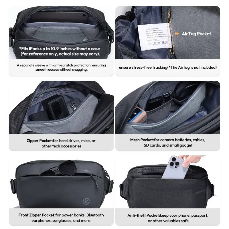Die Ulanzi B120 Kameratasche bietet 10 Liter Stauraum für Fotografen und Reisende. Sie besteht aus spritzwassergeschütztem Material und verfügt über strapazierfähige Reißverschlüsse, sodass Ihre Ausrüstung bei jedem Wetter geschützt ist. Dank mehrerer Fächer, einer Tablet-Hülle und einer abnehmbaren Trennwand lässt sie sich leicht zwischen Kamera- und Alltagsgebrauch umstellen. Mit einem verstellbaren unteren Gurt für Stative eignet sich diese leichte Umhängetasche perfekt für Fotoshootings in der Stadt, Wanderungen oder Wochenendausflüge.