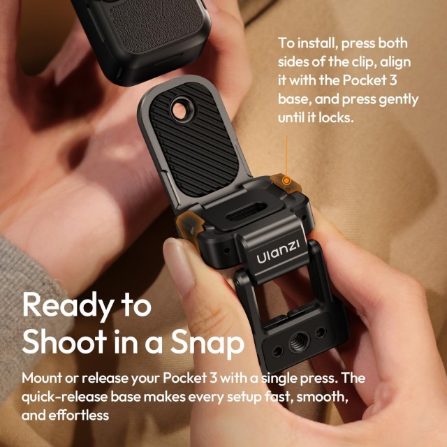 Mit der magnetischen Schnellwechselhalterung Ulanzi PK16 für DJI Pocket 3 gelingen Ihnen mühelos dynamische Aufnahmen. Dieses Zubehör wurde für Komfort und Flexibilität entwickelt und ermöglicht Ihnen dank seines magnetischen Schnellwechselsystems die Montage Ihrer Action-Kamera in Sekundenschnelle. Die robuste Kunststoffkonstruktion sorgt für Stabilität und Langlebigkeit, während das integrierte 1/4"-20-Stativgewinde die Kompatibilität mit Standardstativen und anderen Befestigungslösungen gewährleistet.
