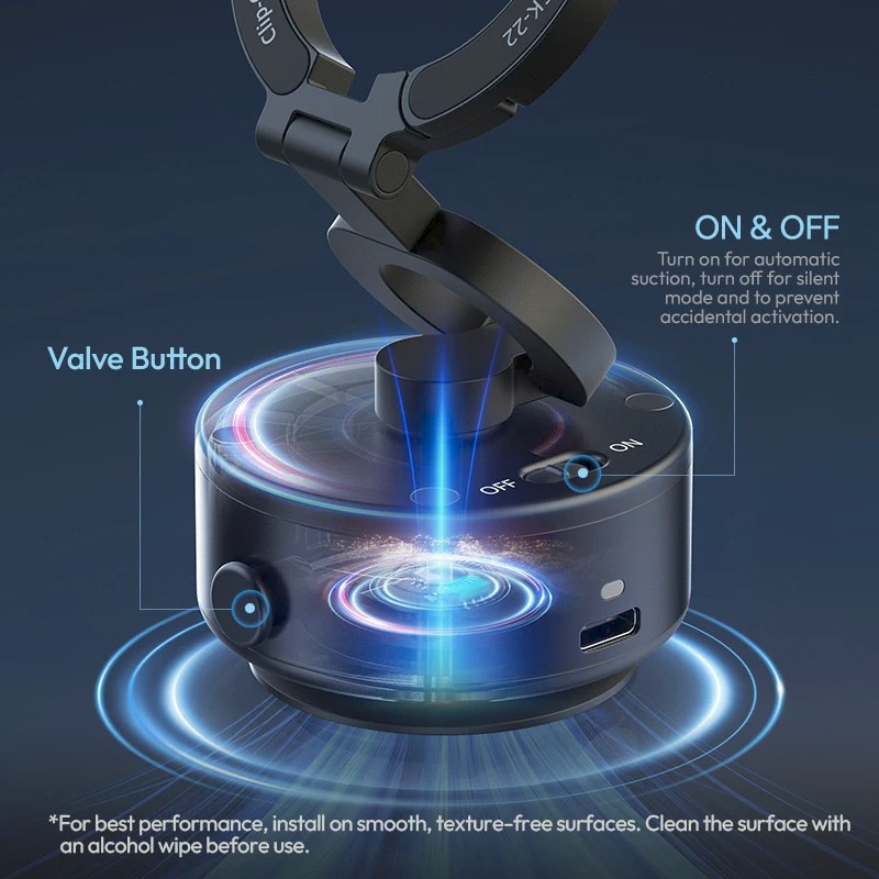 Mit der elektrischen Saugnapfhalterung Ulanzi SK-22können Sie Ihr Smartphone mühelos freihändig bedienen. Diese Halterung wurde für MagSafe-kompatible Telefone oder Telefone mit Magnetringen entwickelt und erzeugt mit einem einzigen Druck automatisch einen starken Saugnapf, sodass Ihr Gerät sicher auf glatten, ebenen Oberflächen haftet. Dank ihres mehrfach achsigen, klappbaren und drehbaren Designs lässt sie sich flexibel einstellen, um Videos, Selfies und Tutorials aufzunehmen oder Ihr Telefon während der Fahrt zu überwachen. Mit einer Magnetkraft von 14 N richtet sie Ihr Smartphone sofort aus und unterstützt Geräte bis zu 500 g. Der integrierte MagLock-Haken sorgt für zusätzlichen Komfort beim Aufhängen, während der Typ-C-Eingang das Aufladen unterwegs ermöglicht. Die SK-22 eignet sich ideal für Windschutzscheiben, Küchenarbeitsplatten, Schreibtische oder jede andere glatte Oberfläche und kombiniert Technologie und Vielseitigkeit für den professionellen oder alltäglichen Gebrauch.