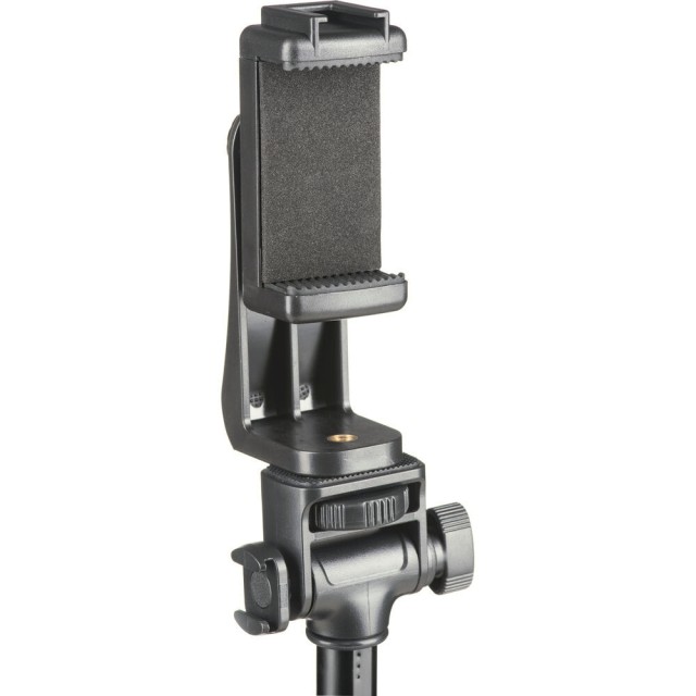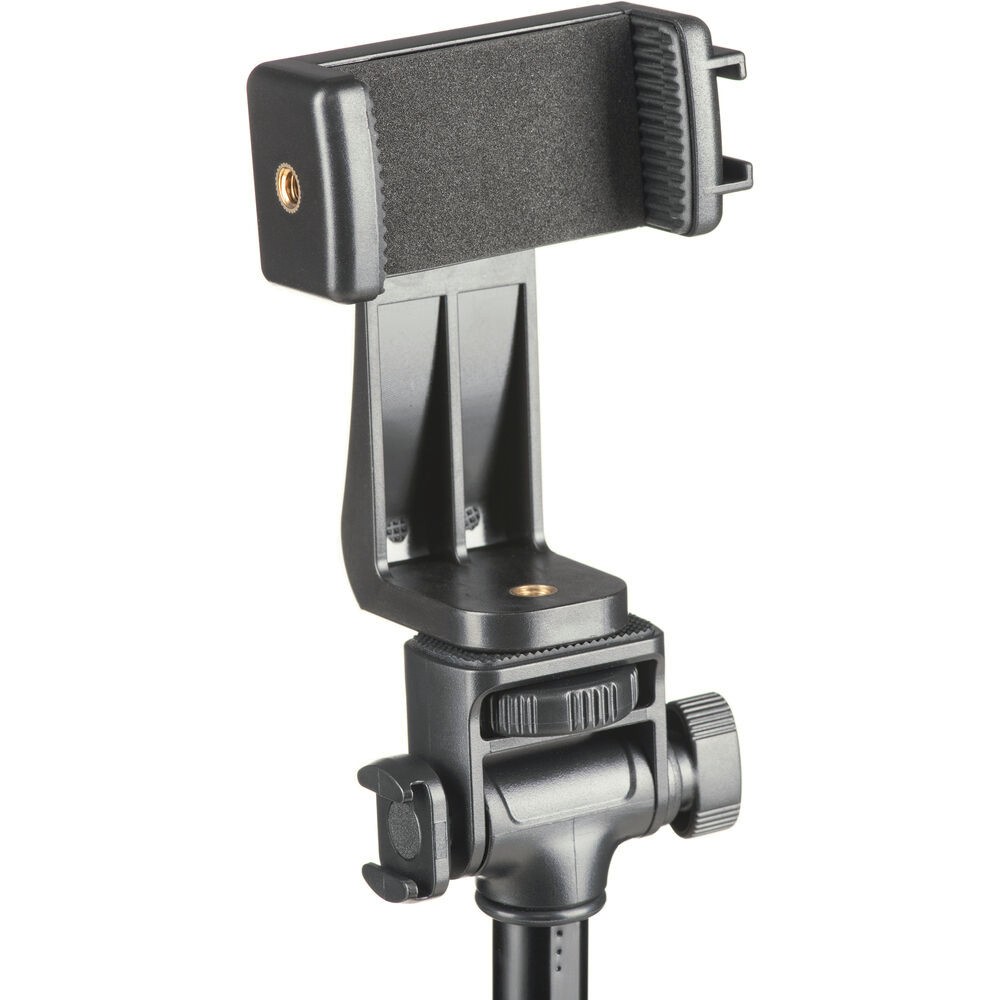 Der Neigekopf unterstützt eine Gerätehalterung mit einer zusätzlichen 1/4"-20-Schraube und einer Kaltschuhhalterung zum Anbringen von Zubehör wie Mikrofonen, kleinen LED-Leuchten oder anderen Geräten. Die federbelastete Telefonhalterung hält Ihr Gerät sicher und geschützt mit Schaumstoff- und Gummipolstern. Im Lieferumfang des Stativs sind eine Bluetooth-Fernauslöser, die bequem an den Stativbeinen befestigt werden kann, sowie eine Tragetasche für den Transport enthalten. Das TB64Z ist leicht und einfach einzurichten und eignet sich ideal für Live-Streaming, Video-Blogging oder Fernaufnahmen.
