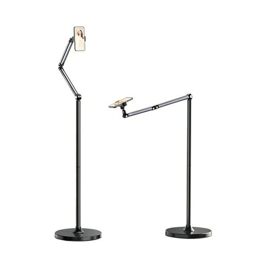 Der verstellbare Handy-Bodenständer Ulanzi TH07 ermöglicht vielseitige Aufnahmen aus nahezu jedem Winkel, egal ob im Stehen, Sitzen oder beim Filmen von Tischaufnahmen. Er verfügt über eine Höhenverstellung von 1,45 m, zwei schwenkbare Arme (270° und 360°), eine um 360° drehbare Handyklemme und einen 26 cm großen, stabilen Sockel für mehr Stabilität.
