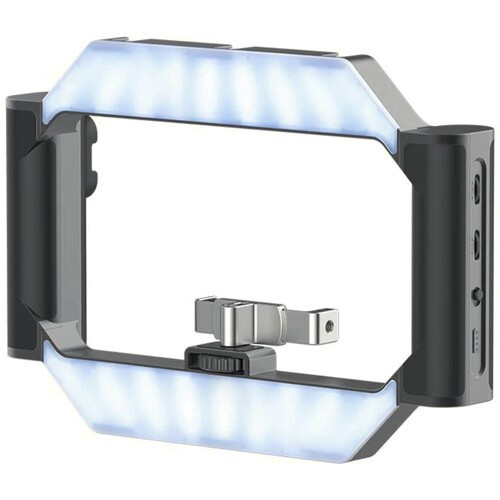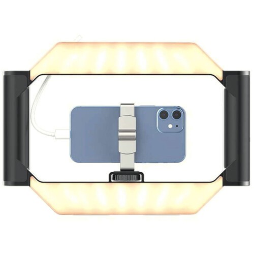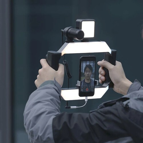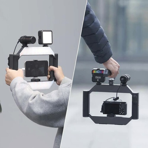 Das Ulanzi U-Rig Smartphone-Videorig mit Beleuchtung vereint Stabilisierung, Beleuchtung und flexible Befestigungsmöglichkeiten in einer kompakten All-in-One-Lösung für Smartphone-Videografie. Mit seinem Dual-Handgriff-Design und integrierten LED-Panels auf beiden Seiten bietet es verbesserte Stabilität und sorgt gleichzeitig für eine gleichmäßige, vorteilhafte Ausleuchtung. Ausgestattet mit 132 LED-Perlen liefert die Leuchte eine Lichtleistung von bis zu 100 Lux bei 3,3' (5500 K) mit einem breiten Abstrahlwinkel von 120°, wodurch sie sowohl für den Innen- als auch für den Außenbereich geeignet ist.