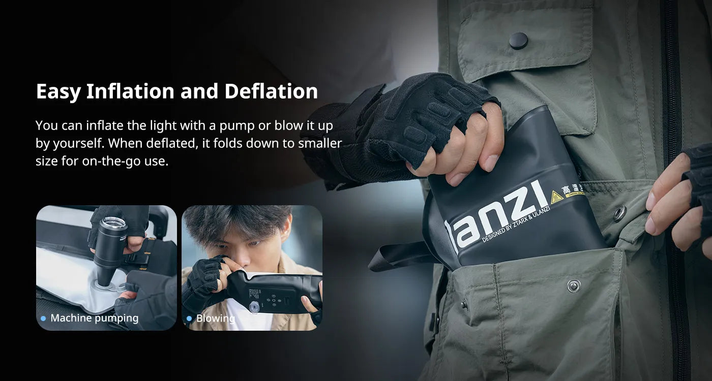 Die tragbare Luftröhrenleuchte Ulanzi UA12/UA20 lässt sich leicht aufblasen und entleeren und eignet sich für verschiedene Szenarien. Passen Sie die Farbtemperatur von 2700 K bis 6500 K an Ihre Aufnahmeanforderungen an. Steigern Sie Ihre Kreativität mit 12 voreingestellten Lichteffekten. Die Magnethalterung und der 1/4-Zoll-Ständer ermöglichen vielseitige Aufstellungen, und ein Trageband erleichtert das Aufhängen. Die Leuchte wird von einem 18-Wh-Akku gespeist, der in 2 Stunden schnell aufgeladen werden kann und bei voller Helligkeit eine Betriebsdauer von 75 Minuten (UA12) bzw. 55 Minuten (UA20) ermöglicht. Sie ist perfekt für den mobilen Einsatz geeignet und lässt sich im entleerten Zustand kompakt zusammenklappen.